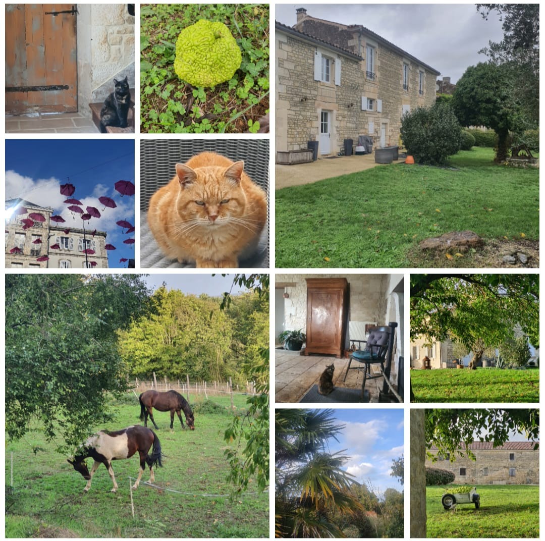 Perched at the top of a valley, the property offers sweeping countryside views and immediate access to a scenic greenway running for miles along the River Vendée. Behind our walled entrance you’ll discover ample parking, beautifully landscaped gardens, a heated swimming pool and nearly two hectares of paddocks where our horses wander freely.